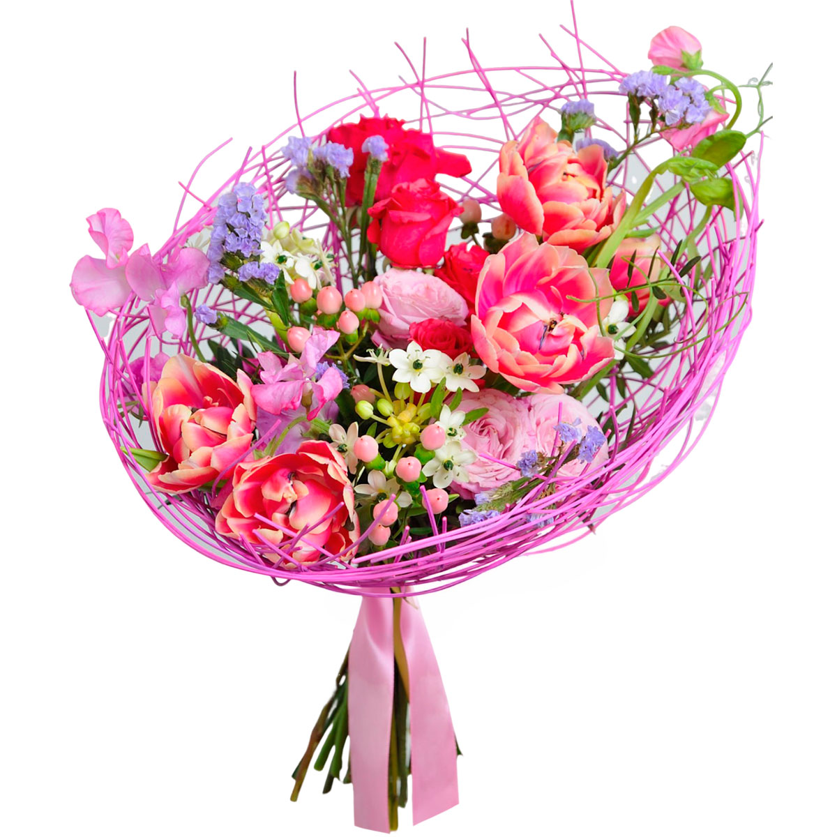 | Состав | Кустовые розы, Розы, Тюльпаны |