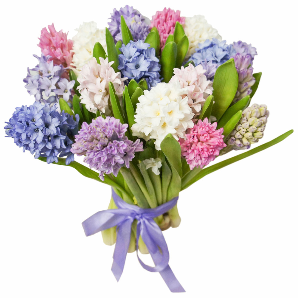 Гиацинты белые, розовые, синие, сиреневые.