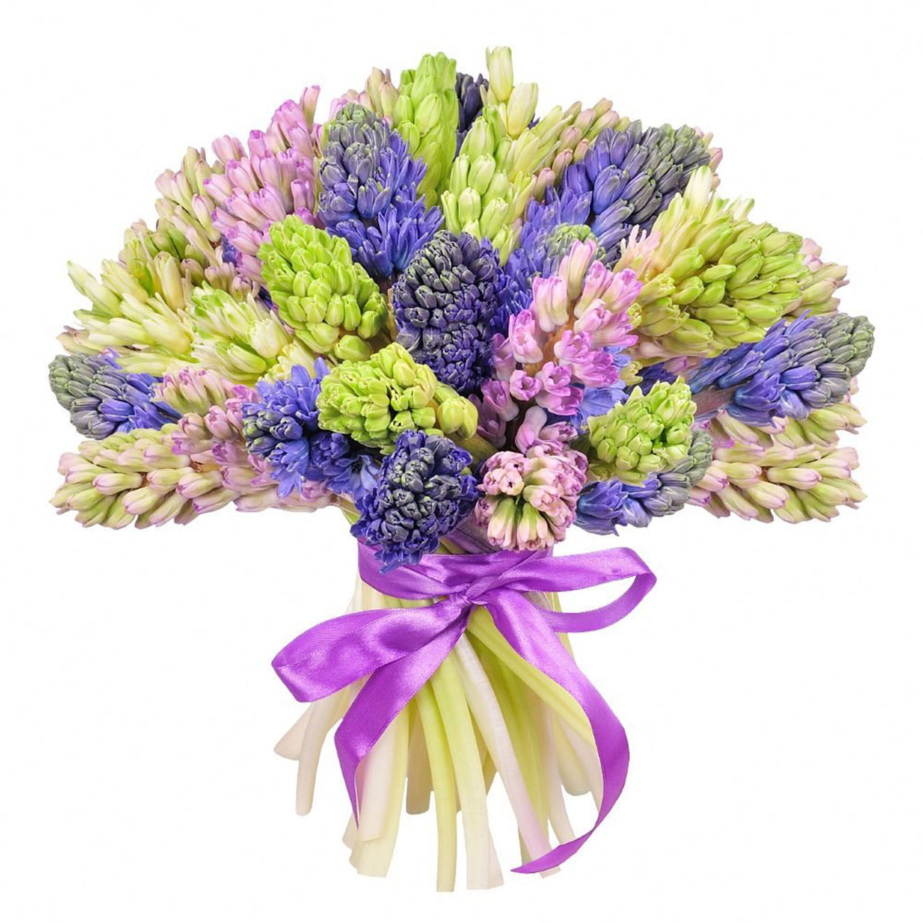 Гиацинты розовые, зеленые, синие.