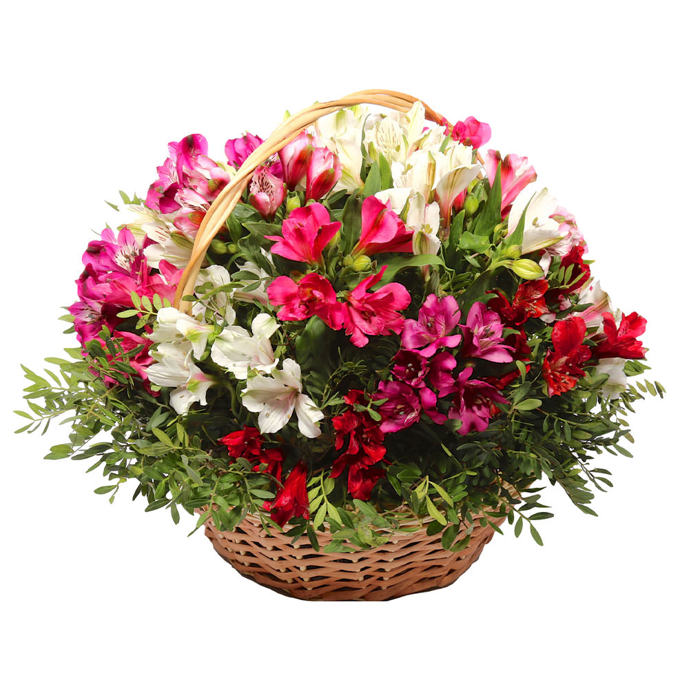 Цветы в корзинке «Краски альстромерий» с доставкой по г Евпатория: вы можете заказать букет в онлайн-магазине «Флормания» по цене от 3190 руб.