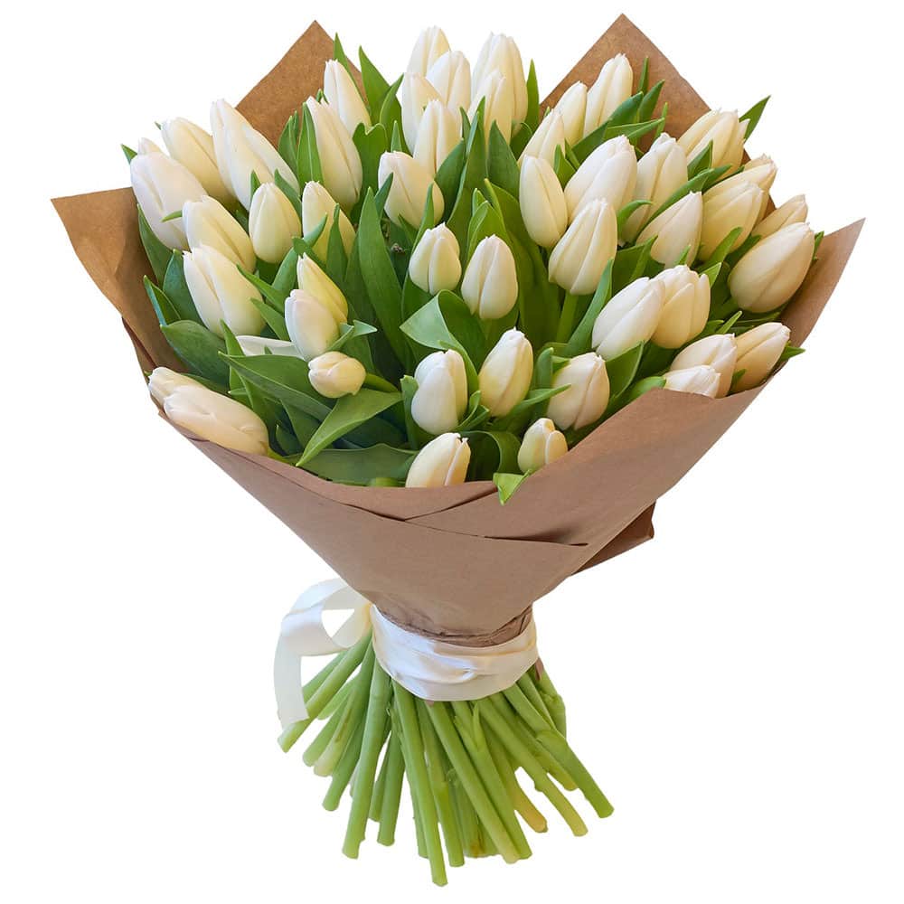 Тюльпаны белые с доставкой по г Евпатория: вы можете заказать букет в цветочном гипермаркете «Флормания» по цене за 150 руб.