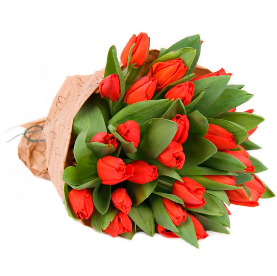 Тюльпаны красные с доставкой по г Евпатория: вы можете заказать букет в супермаркете цветов «Флормания» по цене за 150 руб.